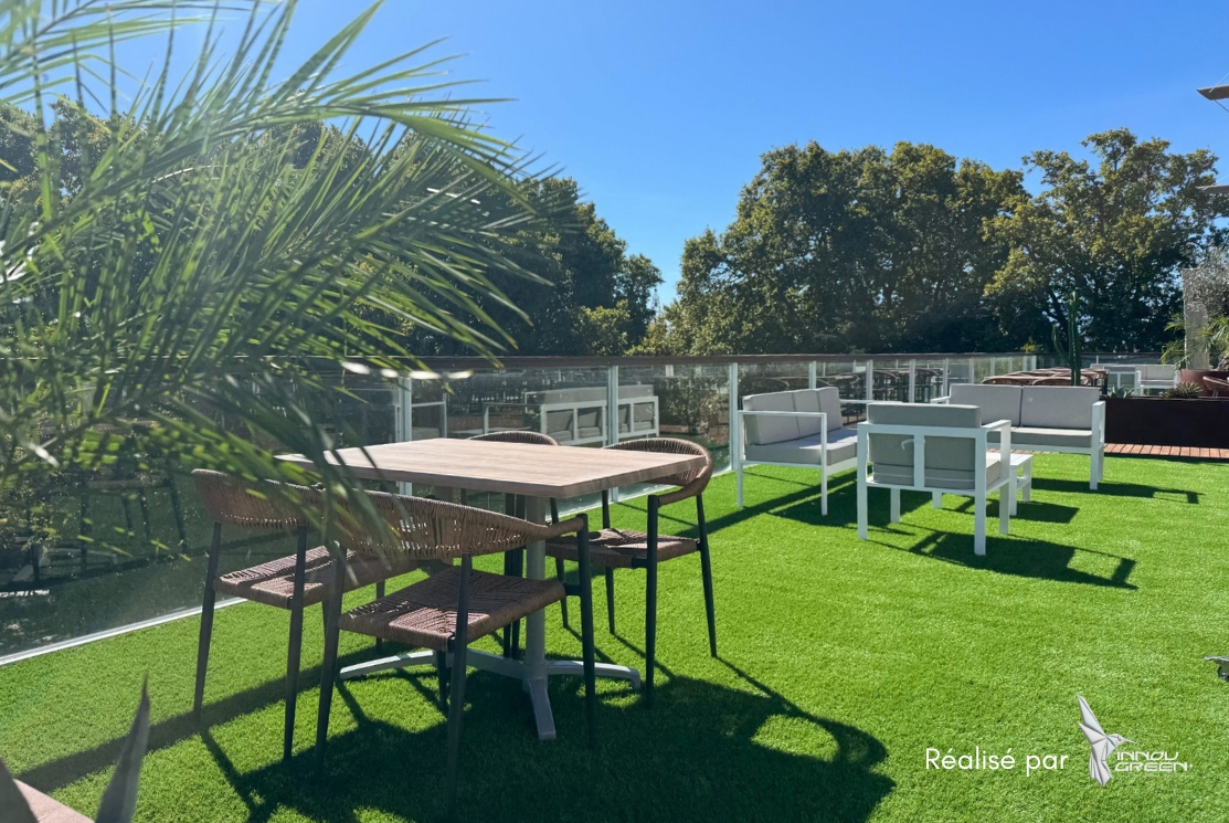 Pose de notre gazon synthétique Caresse 30 pour ce rooftop ! Un bel aménagement créé par nos équipes grâce à notre gazon synthétique Caresse 30. Un rooftop embelli qui est...