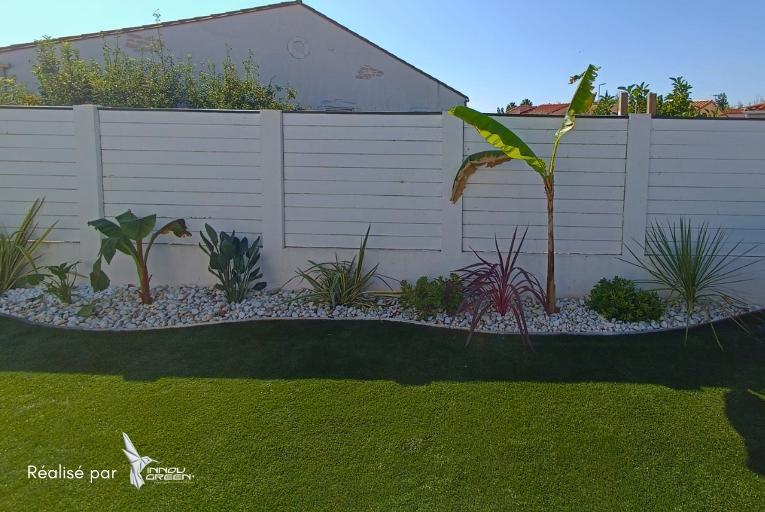 - Pose de gazon synthétique, réalisation de massif et de plantations chez notre client !